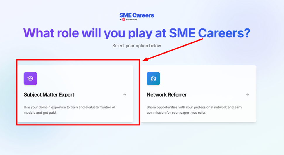 - On the screen, select Subject Matter Expert