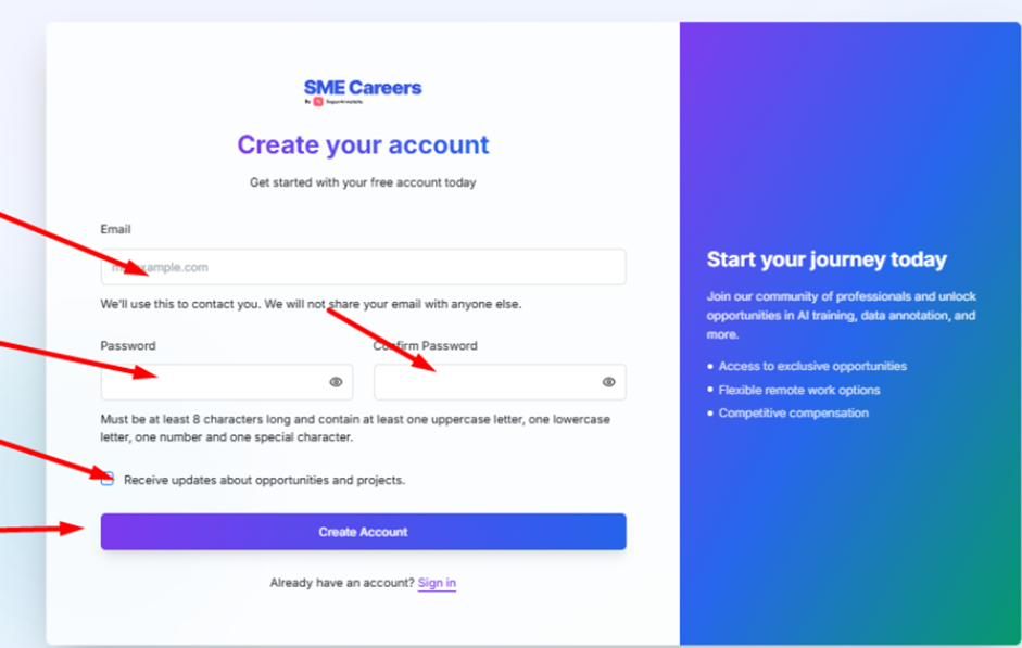 Create your SME Careers account using email and password